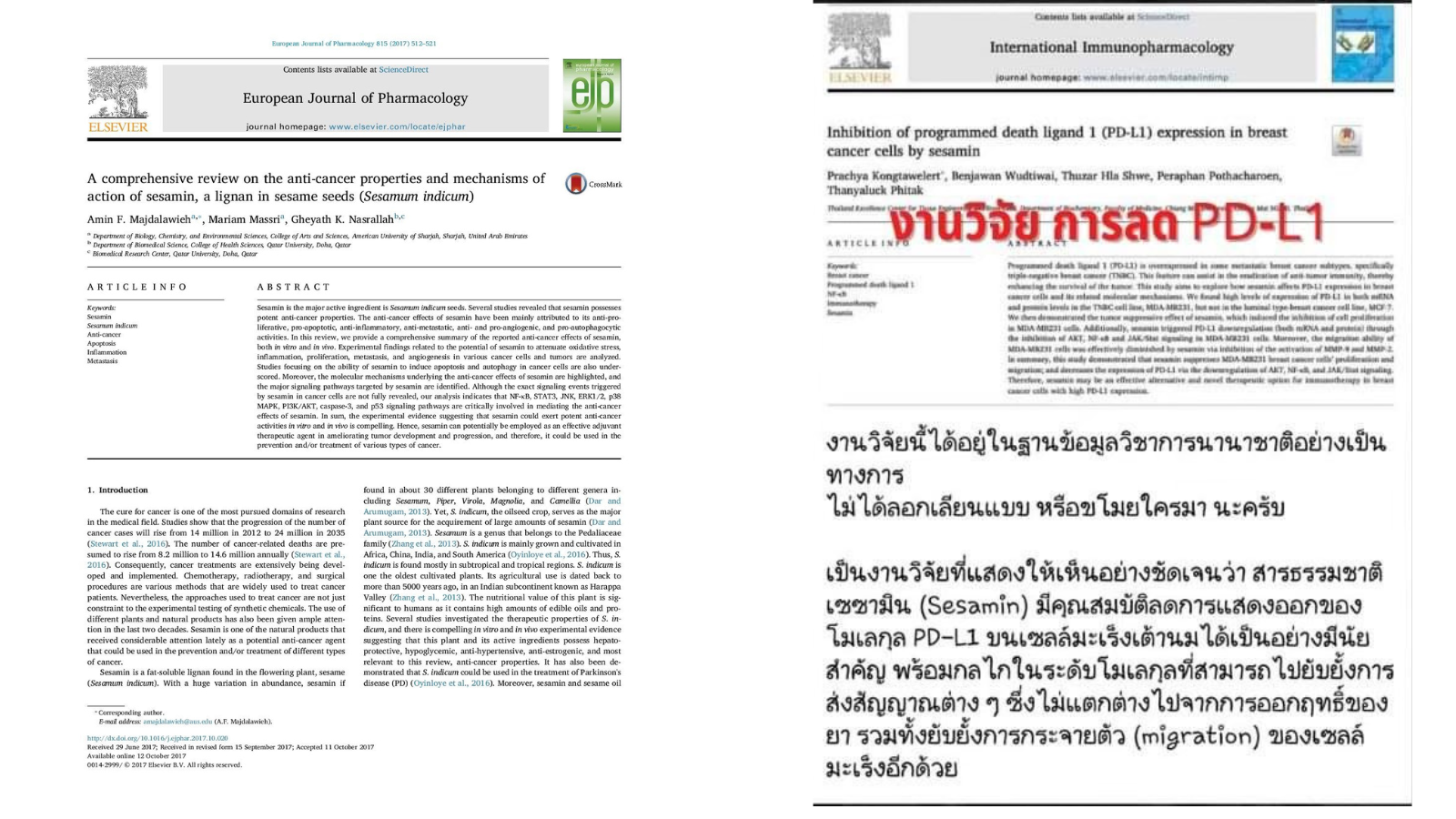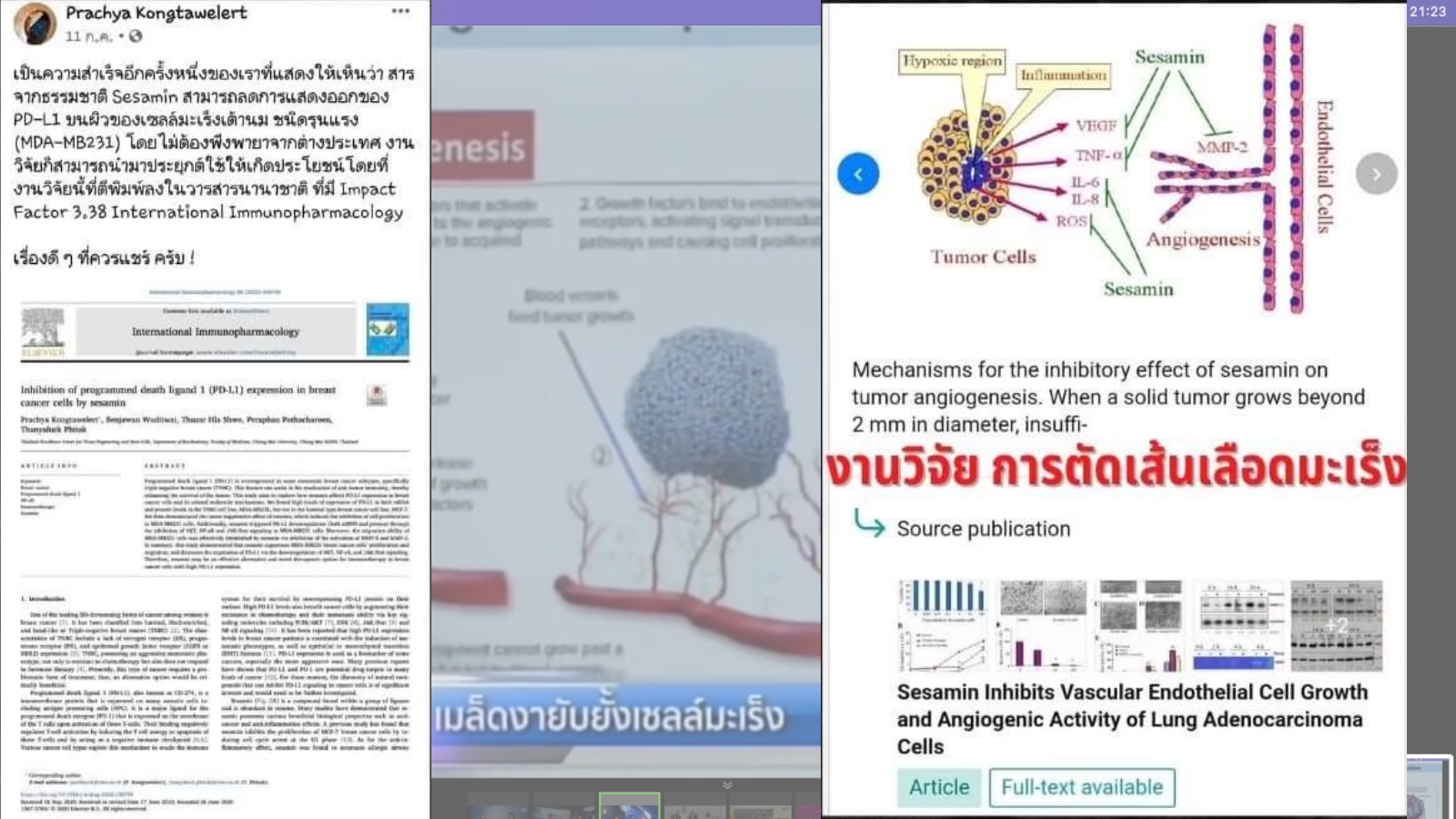 “ยังทำงานวิจัยอีก 1 เรื่อง พบว่าสารเซซามินสามารถกระตุ้นระบบภูมิต้านทานในร่างกาย เพื่อให้เซลล์