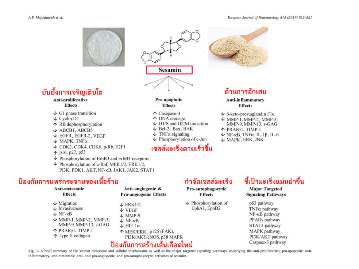 ภูมิต้านทานมากำจัดเซลล์มะเร็งอีกทีหนึ่ง จะเห็นว่ากลไกการออกฤทธิของสารเซซามินเพื่อ